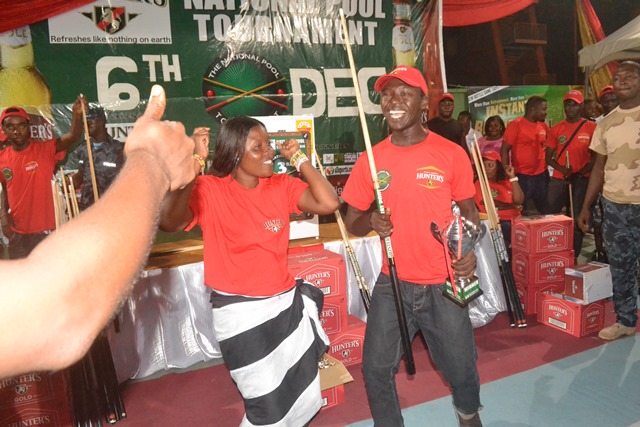 He took home a mouthwatering cash prize of GH¢5,000 (five thousand Ghana Cedis), a trophy, 3 cartons of Hunter’s Gold drinks, a certificate of qualification and a Hunter’s National Pool Tournament branded cu stick.
