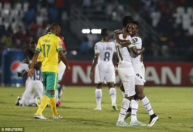 Ghana are through to the quarter-finals after defeating South Africa 2-1 on Tuesday in the last group fixture of the Africa Cup of Nations in Equatorial Guinea.