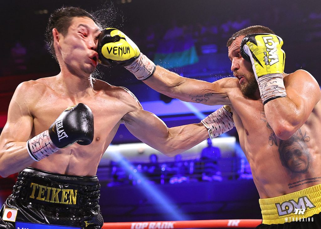 In the fifth round, Lomachenko floored Nakatani with a left-right combination and proceeded to lay a savage beating on his Japanese opponent. The end came in the ninth round when Celestino Ruiz called an end to the carnage.