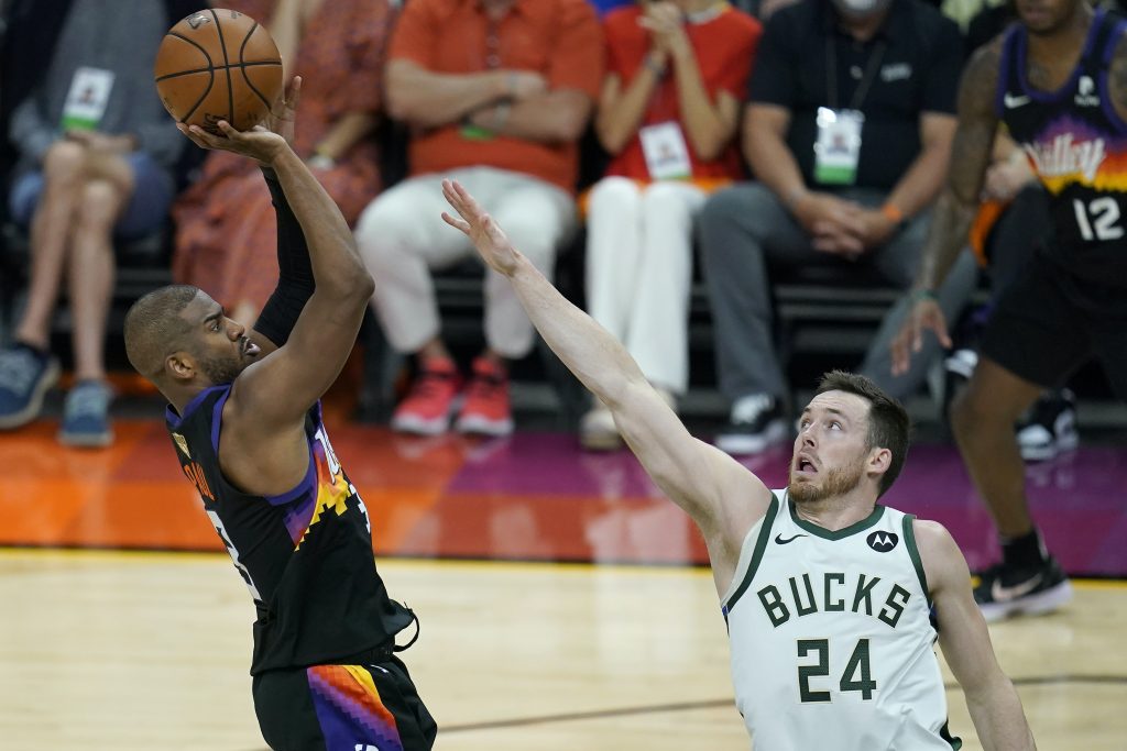 Milwaukee outscored Phoenix 20-0 in the paint in the first quarter, but eight of the Suns’ nine baskets were 3-pointers and they were behind just 29-26.