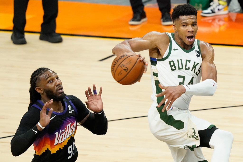 It was tied at 41 with just under five minutes left in the half before the Suns surged ahead with precision offense and some shutdown defense. They finished with a 15-4 run, the Bucks managing just a pair of baskets by Antetokounmpo.