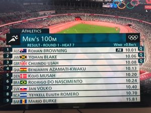 Australian sprinter Rohan Browning finished first in the heat with 10.01 seconds, followed by Jamaica’s Yohan Blake and Great Britain’s Chijindu Ujah.