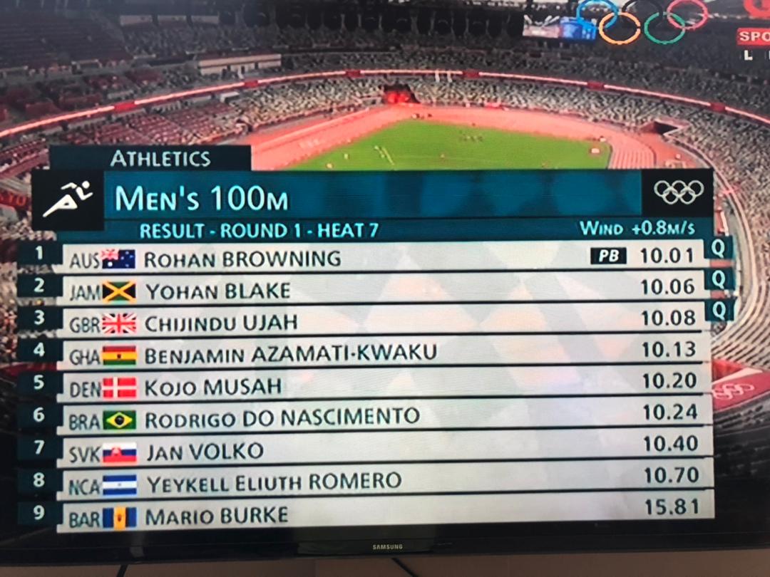 Ghanaian athlete Benjamin Azamati has fallen short of qualifying for the semi-final of the Men’s 100m event of the ongoing Tokyo 2020 Olympic Games.