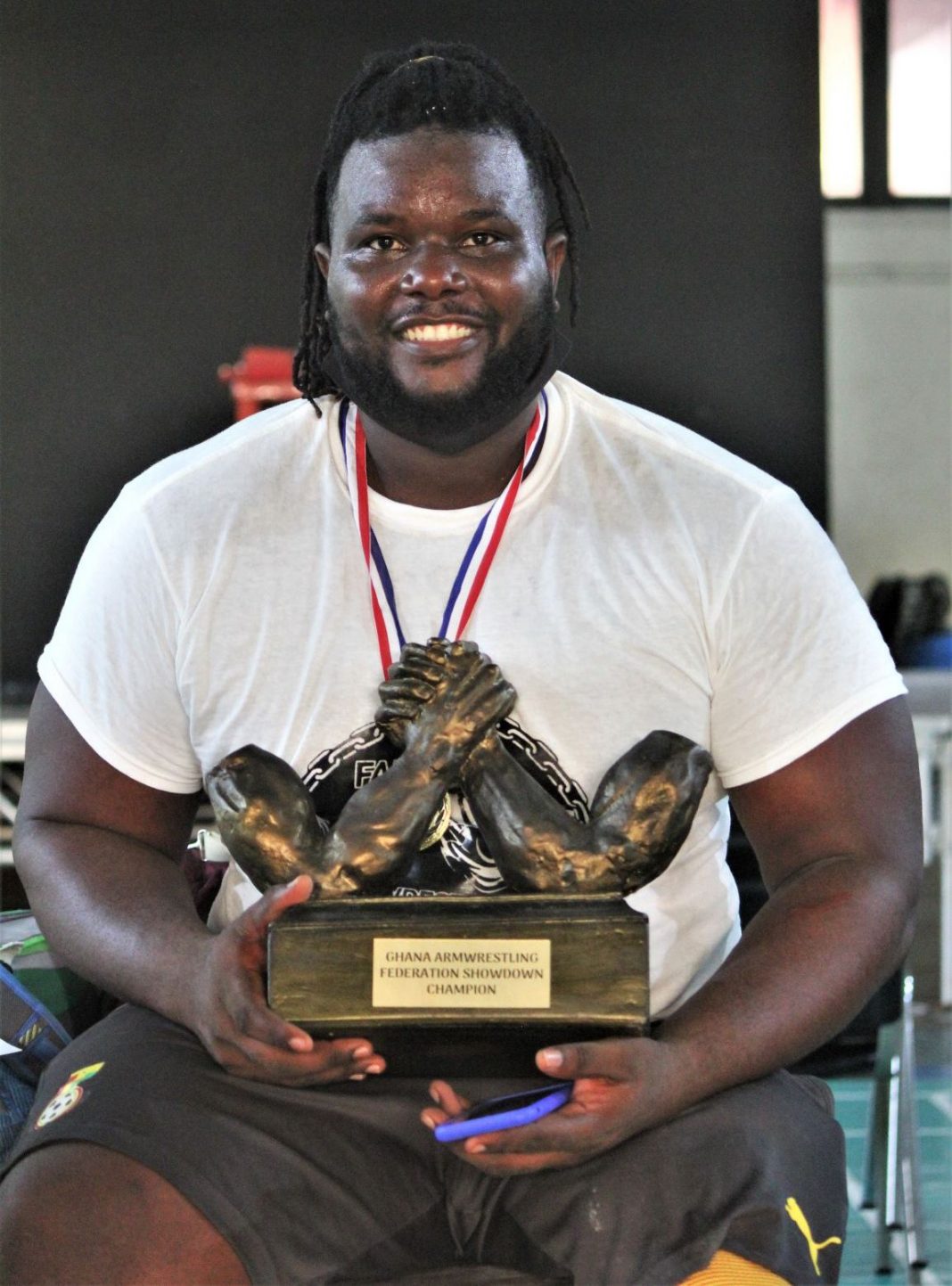 Haruna Tahiru, an African champion himself in the Para Armwrestling category who was poised to be crowned, took the Supermatch contest by contest, losing 2 contest and eventually coming back to win and thus being crowned the new heavyweight champion for Armwrestling in Ghana. He won an Armwrestling miniature trophy, cash prize and other attractive prozes.