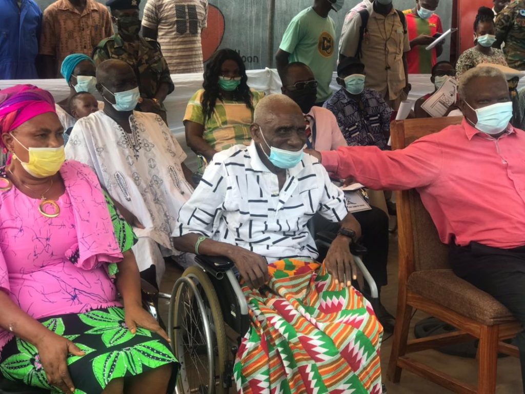 The Chief of Defense Staff, Vice Admiral Seth Amoama led the delegation from Accra to commission the mini-mart for the 77-year-old to cater for his upkeep.