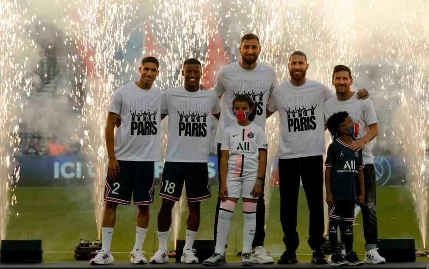 PSG’s latest signing joined four other recruits presented on the field to some 49,000 fans at Parc des Princes before kickoff.