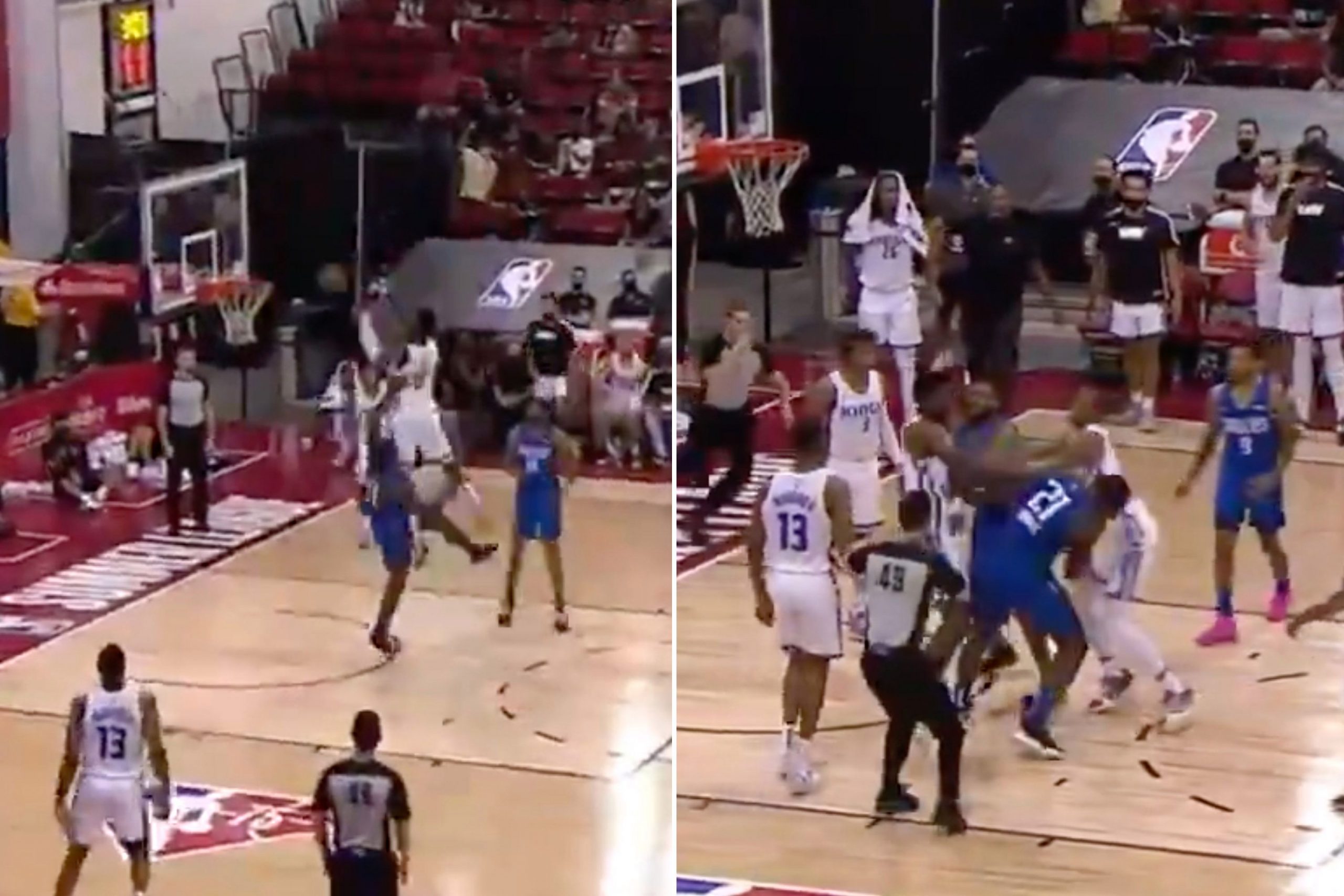 A wild dunk attempt was only the start of the violence in a summer league game between the Kings and Dallas Mavericks on Sunday.