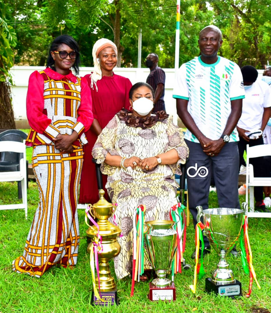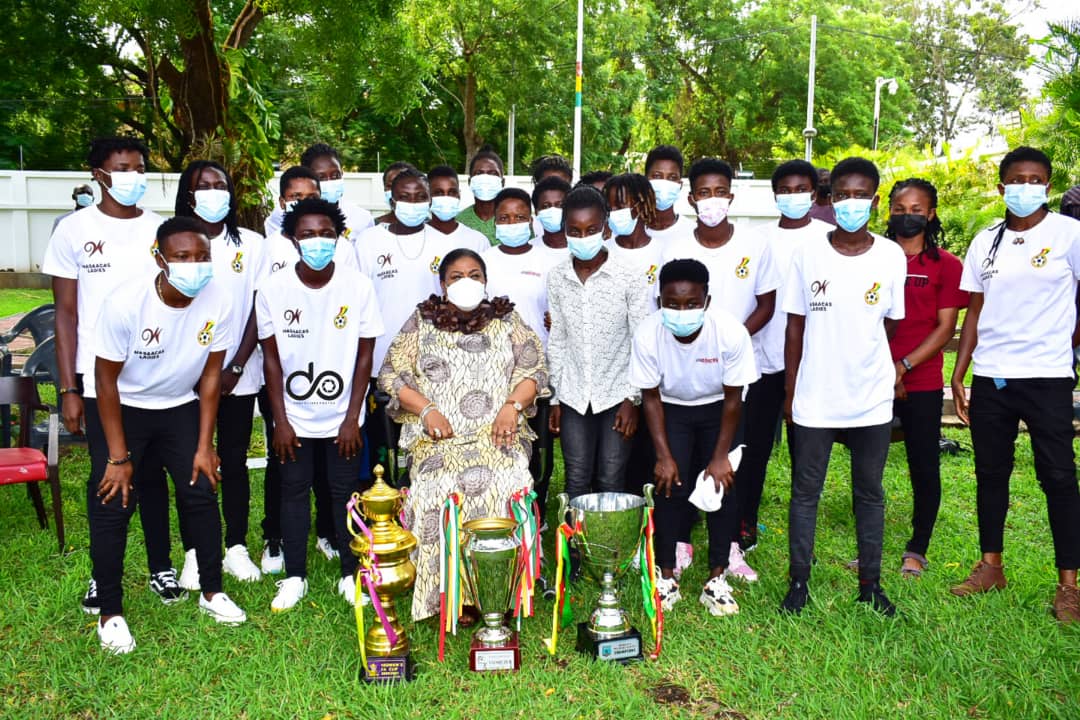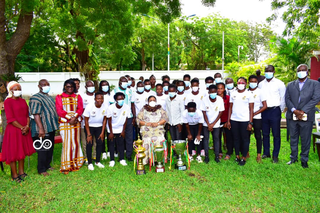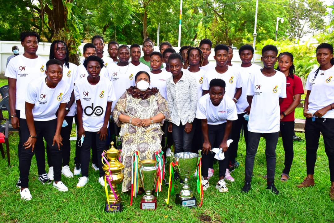 Hasaacas Ladies on Monday visited the offices of First Lady, Mrs. Rebecca Akufo-Addo to present three trophies the Ghanaian women’s league powerhouses won this past season.