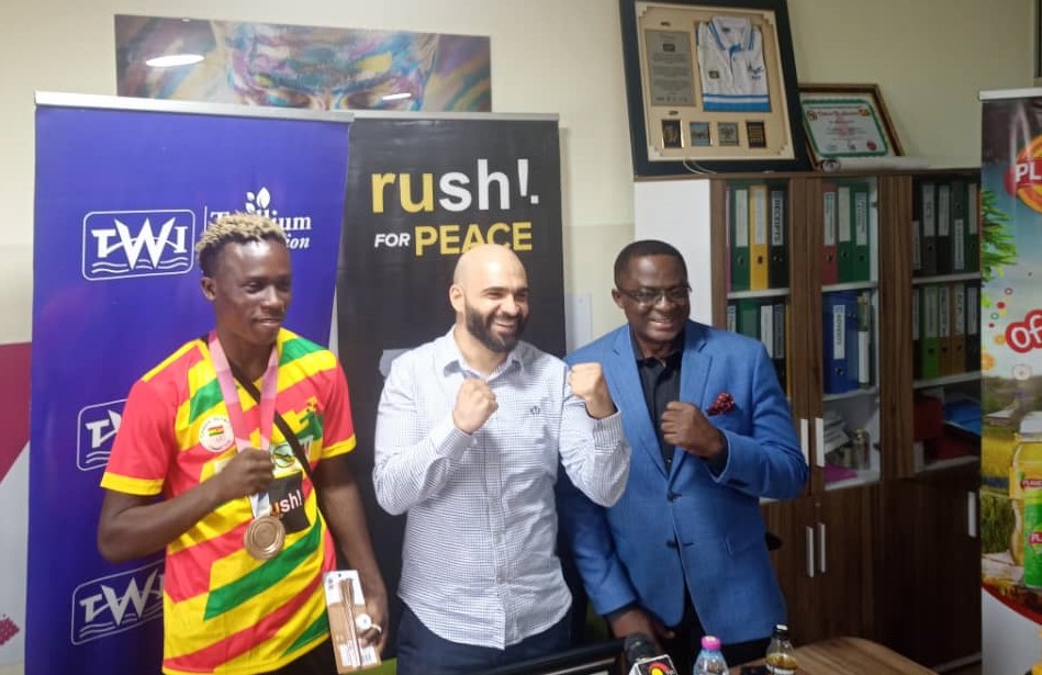 Chief Marketing Manager of Twellium Industrial Company Limited, Mr. Ali Ajami, was on Monday thrilled to meet Ghana’s bronze medalist at the Tokyo 2020 Olympic Games, 20 year old featherweight boxer, Samuel Takyi AKA ‘Ring Warrior’ and some members of the team that made Ghana proud at the biggest sports festival in the world.