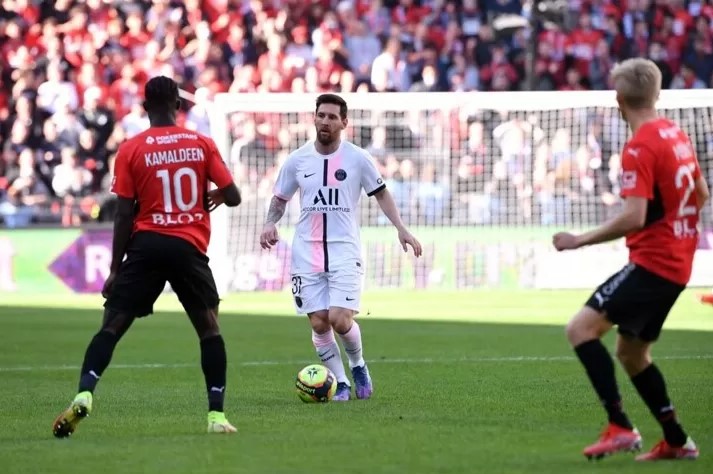 Kamaldeen Sulemana face to face against Lionel Messi during Rennes’ 2-0 win over PSG
