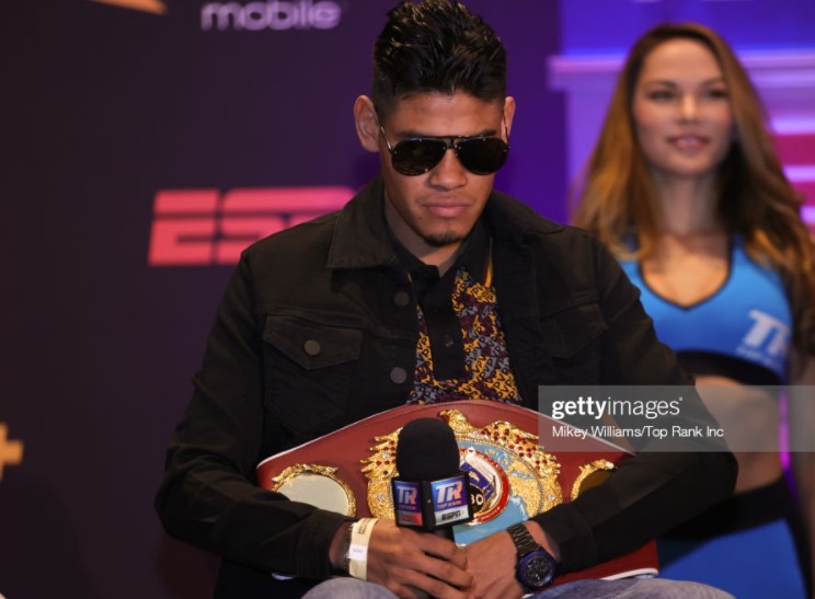 SAN DIEGO, CALIFORNIA – OCTOBER 13: Giovani Santillan poses during the press conference at Omni San Diego Hotel on October 13, 2021 in San Diego. (Photo by Mikey Williams/Top Rank Inc via Getty Images)