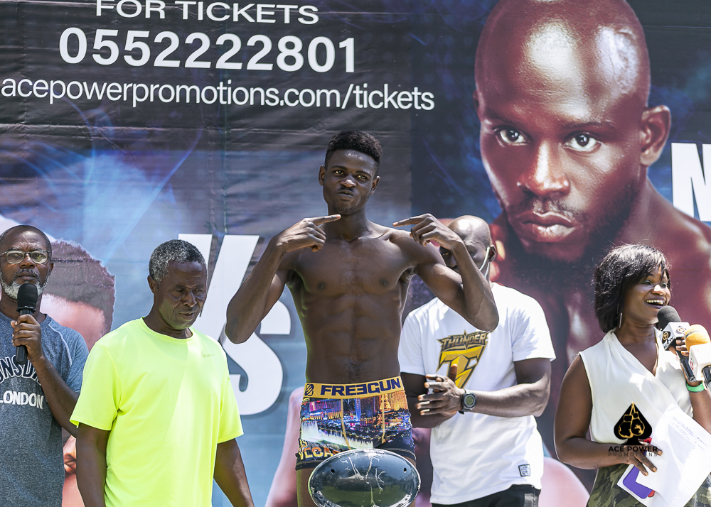 Also set to rumble is promising Ahmed Abdula (2-0, 2 KOs), managed by UK based Streetwise Management CEO, Michael Amoo-Bediako, hopes to continue the winning start to his pro career after weighing 177.6 lbs whilst opponent for their light heavyweight contest scheduled for 6 rounds, James Owoo made 177.3 lbs.