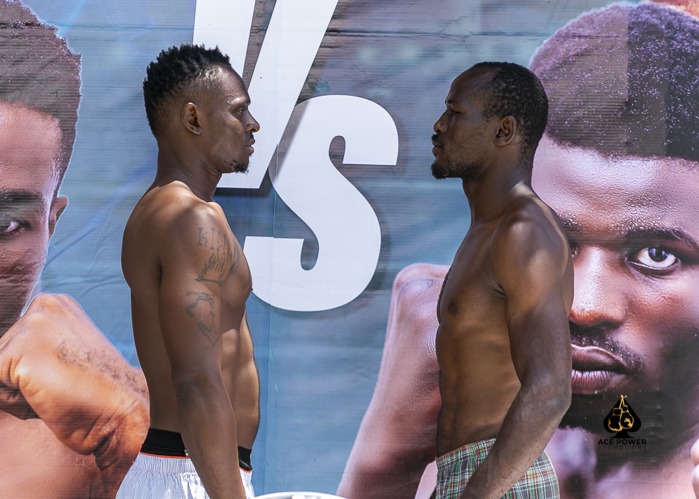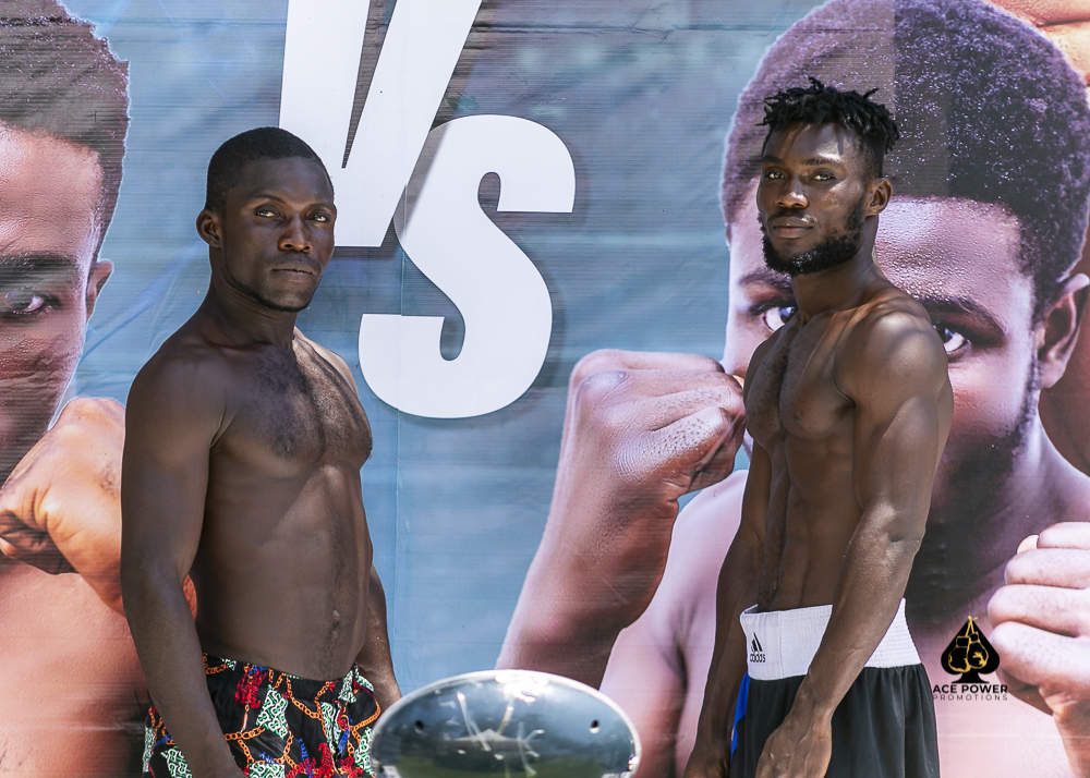 In the co-main feature, 22 year old Holy Dorgbetor (7-0, 5 KOs) of the ACE Power Promotions stable weighed 125.5 lbs against his opponent for the UBO intercontinental and Ghana national featherweight championship billed for 10 rounds, Success Tetteh (10-2, 8 KOs) who made125.7 lbs.