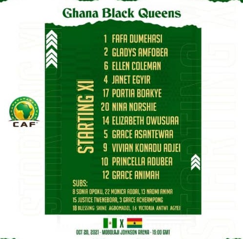 Black Queens coach, Mercy Tagoe-Quarcoo has named the starting line-up for the national female team’s 2022 Africa Women’s Cup of Nations qualifying first leg against the Super Falcons of Nigeria in Lagos this afternoon.