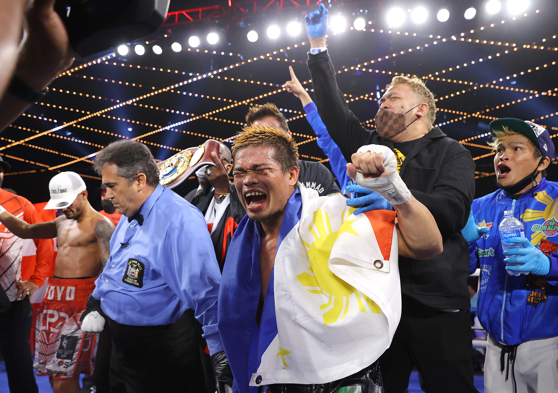 NEW YORK, NEW YORK – OCTOBER 30: Jonas Sultan is victorious as he defeats Carlos Caraballo for the WBO intercontinental bantamweight championship at The Hulu Theater at Madison Square Garden on October 30, 2021 in New York City.(Photo by Mikey Williams/Top Rank Inc via Getty Images)
