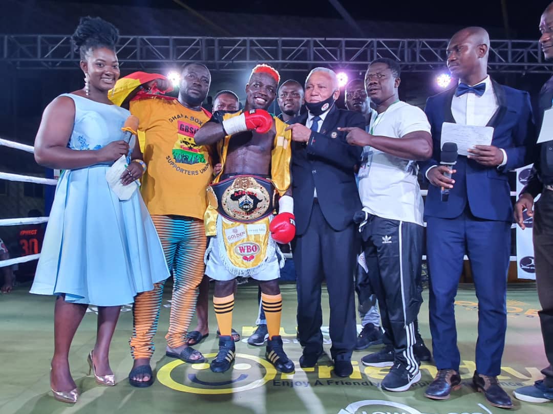 Ghana’s former national champion, Sheriff ‘One Time’ Quaye finally laid his hands on an international title following a dominant round three KO win over Emmanuel Amos of Tanzania Friday night at the Royal Dede Golden Beach Resort in Accra to annex the WBO Africa lightweight belt.
