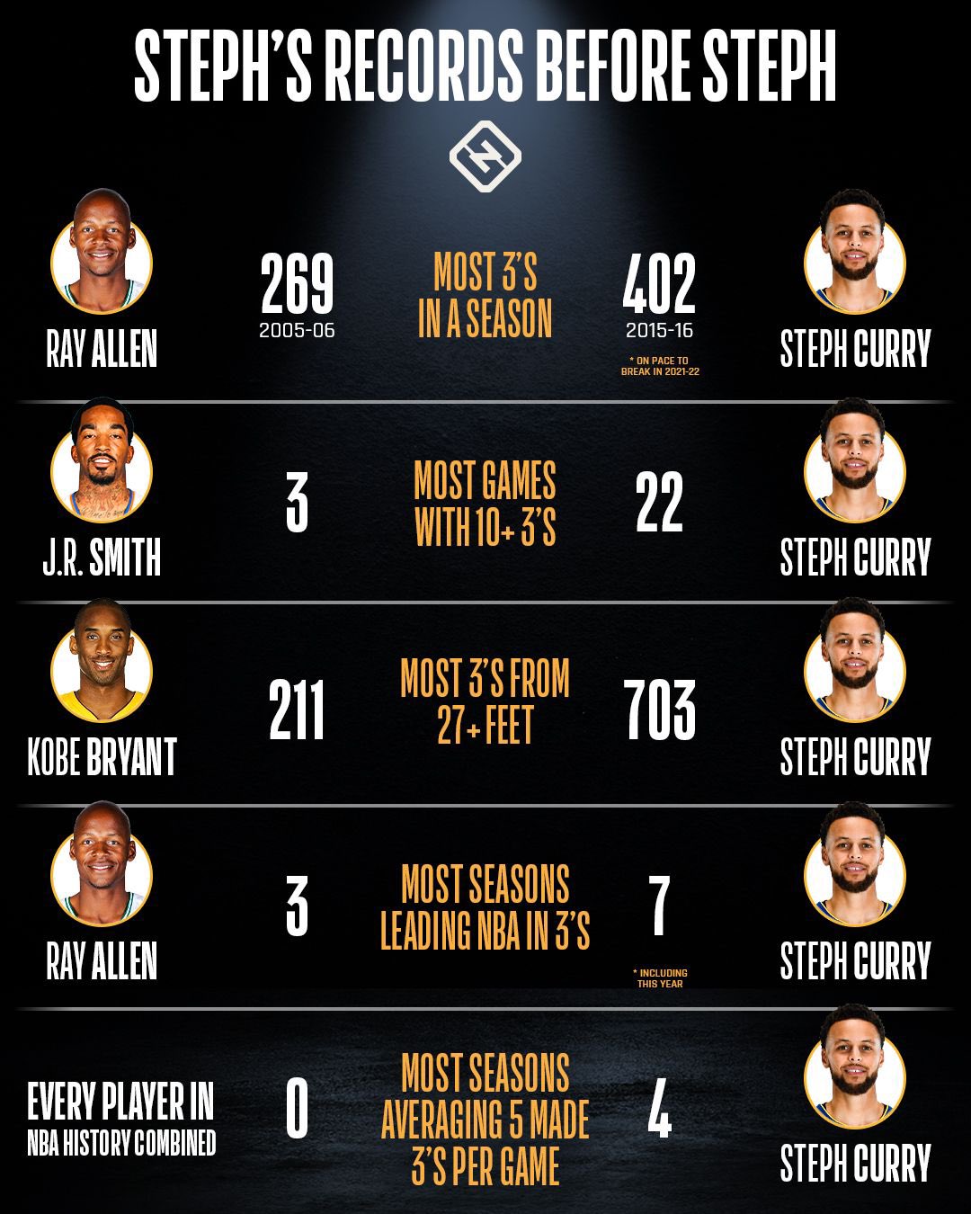 On Tuesday, Curry needed two 3-pointers to pass Ray Allen’s all-time mark. He got the first inside the first two minutes, and the record-breaker came at the 7:33 mark of the first quarter.