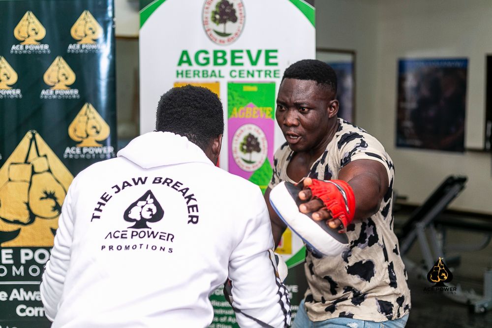 Streetwise Management boxer Joshua Wahab Oluwasuen who is the current WBO Africa junior lighweight champion together with ACE Power Promotions signee, Holy ‘Jaw Breaker’ Dogbertor introduced theirselves to the media on Wednesday evening in a workout at the gym of La-Palm Royal Beach Hotel in Accra ahead of their scheduled Dec 25, 2021 respective bouts at the same venue.