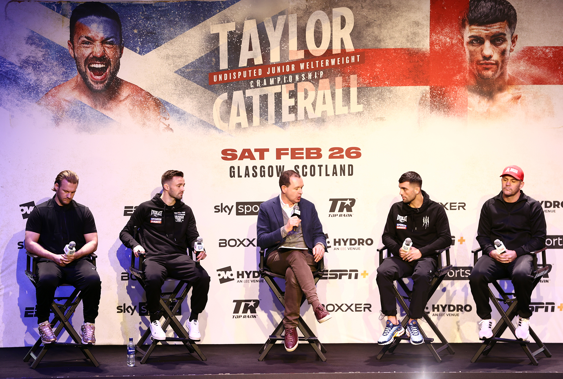 The fists did not start flying, but there were fireworks between undisputed junior welterweight world champion Josh Taylor and top contender Jack Catterall. Taylor and Catterall will lock horns for all the belts Saturday evening at OVO Hydro in Glasgow, Scotland, a short drive from Taylor’s hometown of Prestonpans.