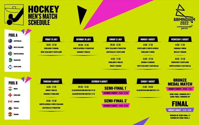 FIH CEO, Thierry Weil, said: “After the reveal of the participating teams last week, the publication of the match schedule is another really important milestone on the road to the upcoming Commonwealth Games! On behalf of FIH, I encourage all fans to buy tickets early to make sure they will attend the matches from the splendid Birmingham 2022 venue!”