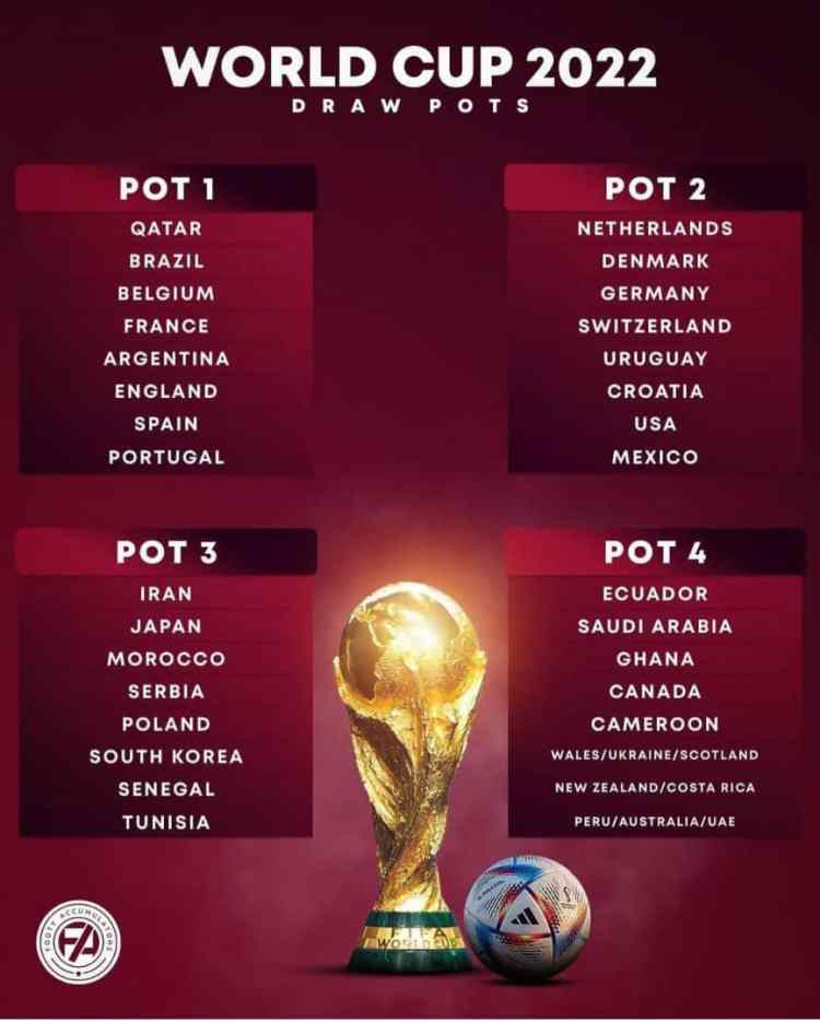 The Black Stars of Ghana and their African counterpart, Cameroon are placed in pot 4 ahead of Friday’s final draw for the FIFA World Cup Qatar 2022.