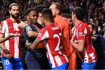 With a hostile home crowd whistling City’s every touch, Atleti produced a series of fiesty challenges which culminated with Felipe leaving Phil Foden crumpled on the turf after a brutal aerial duel. He was lucky to avoid a booking – his stray elbow left Foden bleeding from the head and bandaged up for the rest of the game – with City’s anger only compounded when he was cautioned not long afterwards for smashing into the back of Kevin De Bruyne.