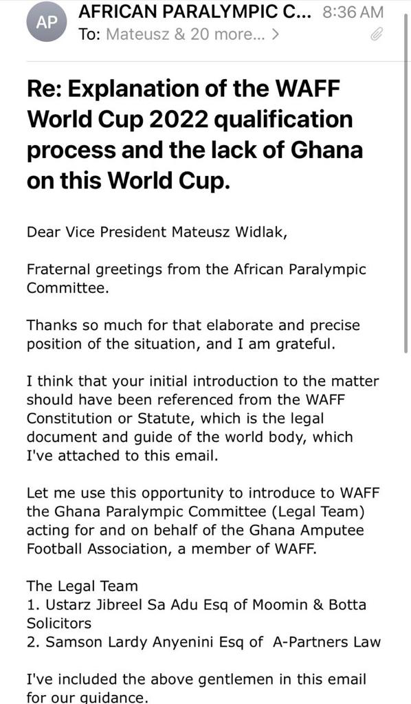 In response to WAFF’s letter, the African Paralympic Committee, headed by president Samson Deen have decided to challenge the decision of the highest governing body of the sport and find the rationale behind WAFF’s decision to disqualify Ghana and prevent them from participating in the World Cup.