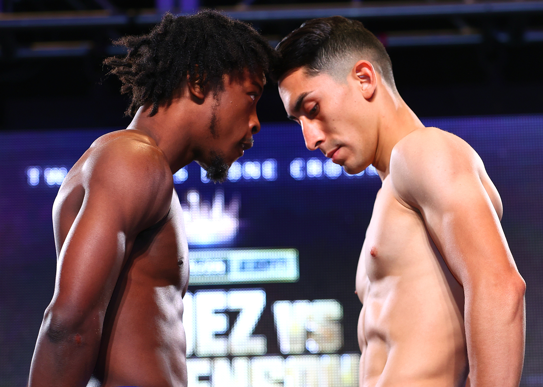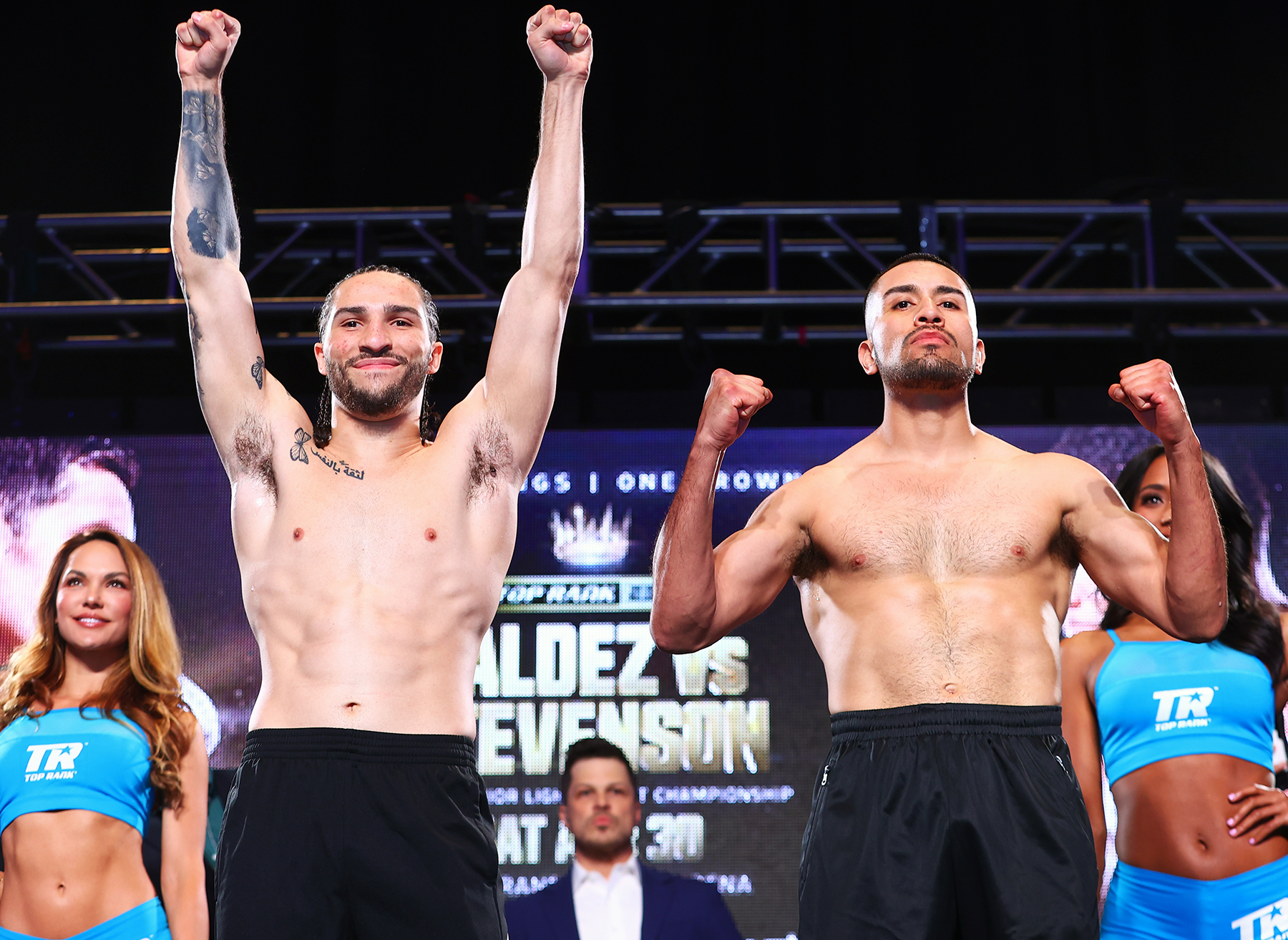 Shakur Stevenson was forced to strip naked in order to meet weight while Oscar Valdez came in comfortably under the limit beforeĀ the pair engaged in an icy face-off ahead of Saturday’s super-featherweight unification bout in Las Vegas.