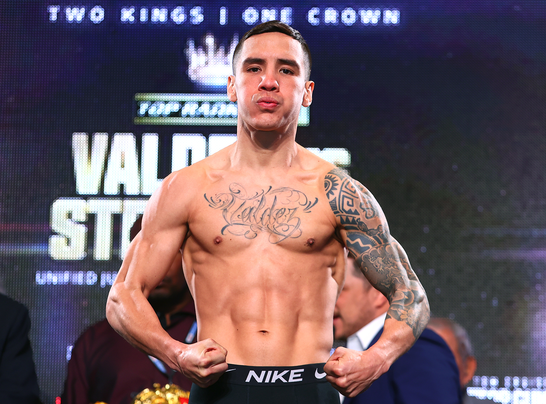 Valdez followed up by weighing in at 129.6lbs as the pair prepare to put their world titles and unbeaten records on the line at MGM Grand Garden.