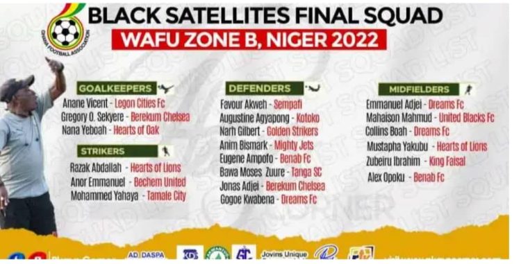 Head coach Abdul Karim Zito has named the final tournament squad of the Ghana U-20 male national team, the Black Satellites for the for the WAFU U-20 Cup of nations tournament in Niger next month.