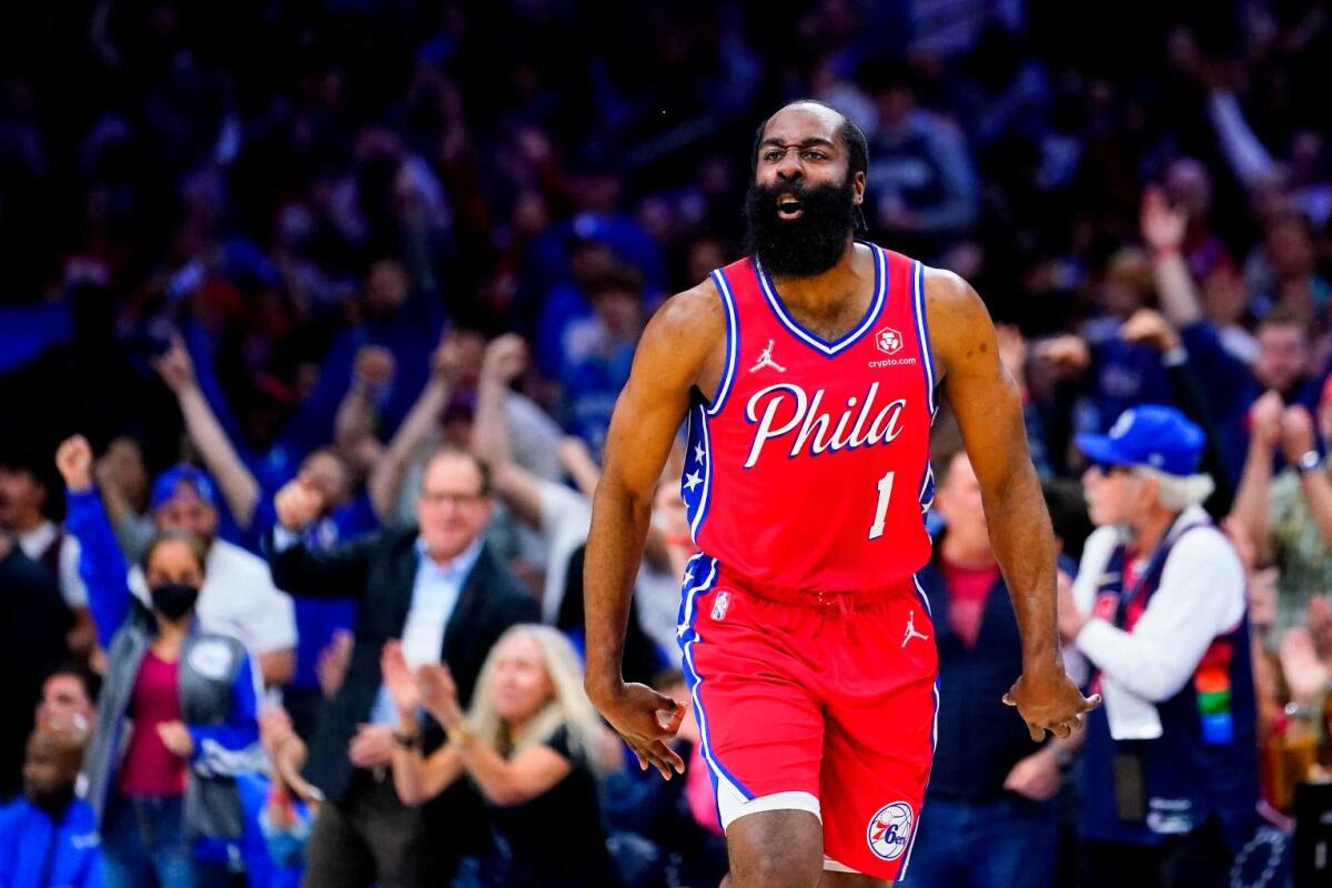 After a scoreless first quarter, Harden followed Embiid’s hot start and scored 13 in the second. He missed his first four shots of the game until he buried a 3 and then got rolling. He scored a bucket in transition during a 15-2 run and then waved his arms toward the crowd, calling on them to get louder.