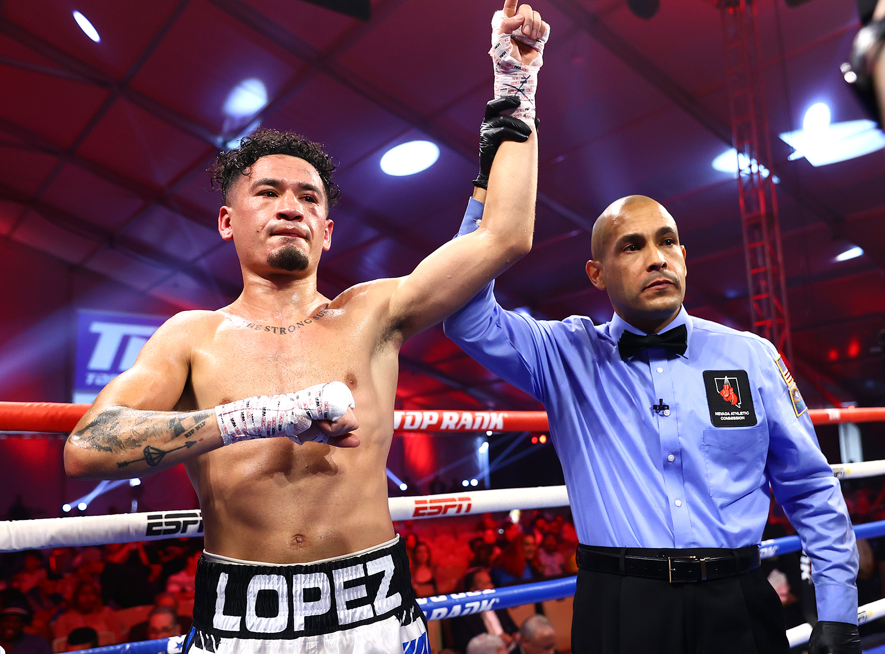 Lopez was knocked down with right hands in the first and third rounds, but he won the final five rounds on the judges’ cards to snatch victory from near-defeat. Lopez entered the fight coming off a disappointing no-contest and left the ring with new life in the featherweight ranks.