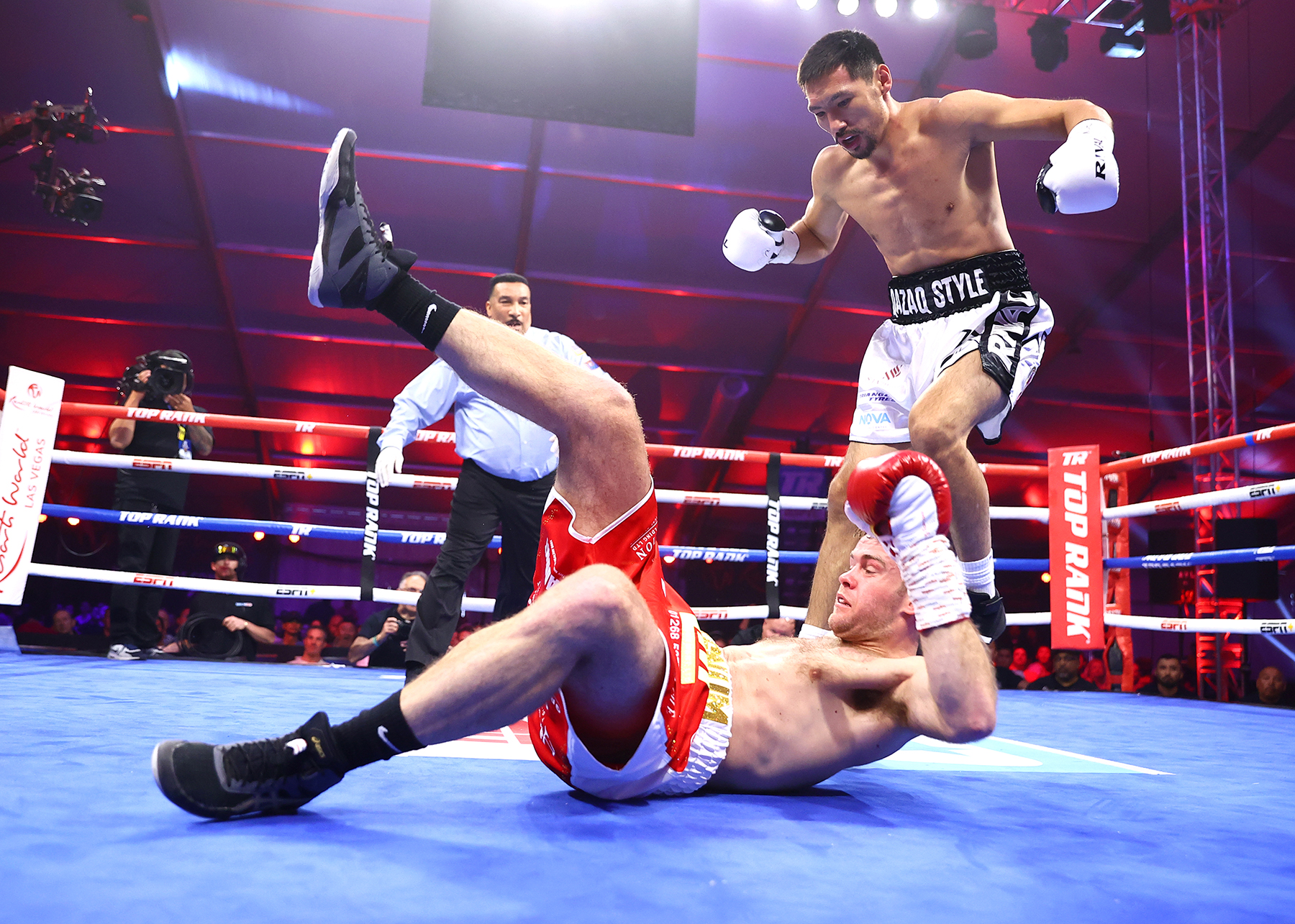 Janibek (12-0, 8 KOs), a 2016 Olympian from Kazakhstan, landed 15 of his final 17 power shots and 21 of 33 overall. Dignum (14-1-1, 8 KOs), from Essex, England, formerly held the WBO European title, but was no match for the sensational southpaw. Janibek knocked down Dignum in the opening round, and it was only a matter of time until the hammer dropped.