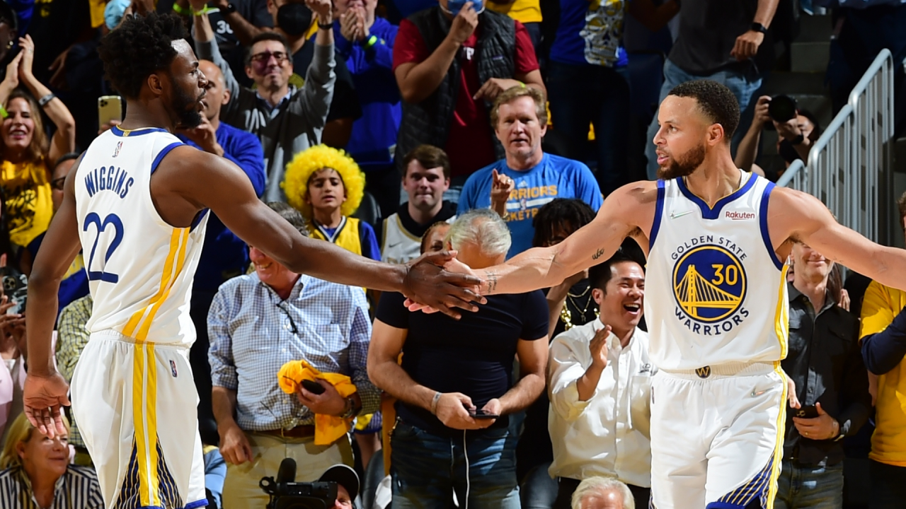 About a minute later, Wiggins, who had 11 rebounds, moved quickly down the right baseline for a follow dunk on a miss by Curry as the Warriors extended their NBA record with a 26th consecutive series in which they won at least one road game.