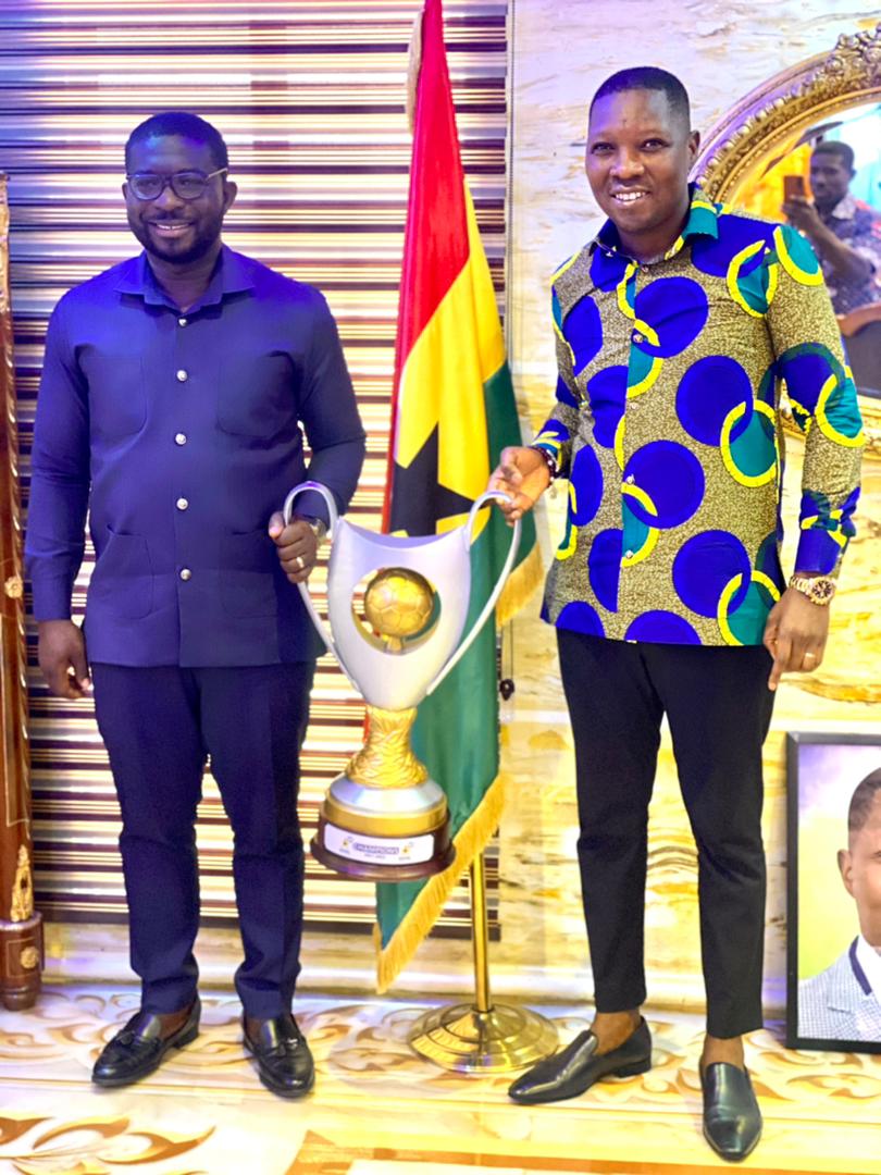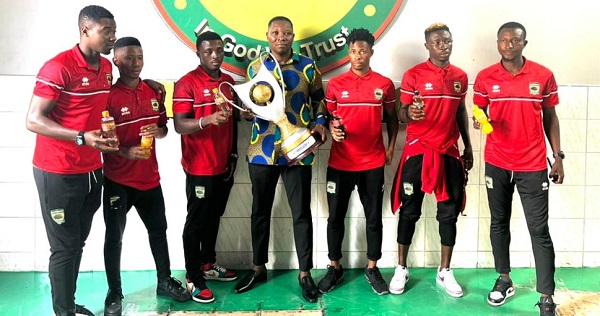 Led by CEO, Nana Yaw Amponsah, the playing body together with some officials presented the coveted league trophy to the founding president of Happy Man Beverages, Dr Emmanuel Bortey Borketey at Doboro, near Nsawam.