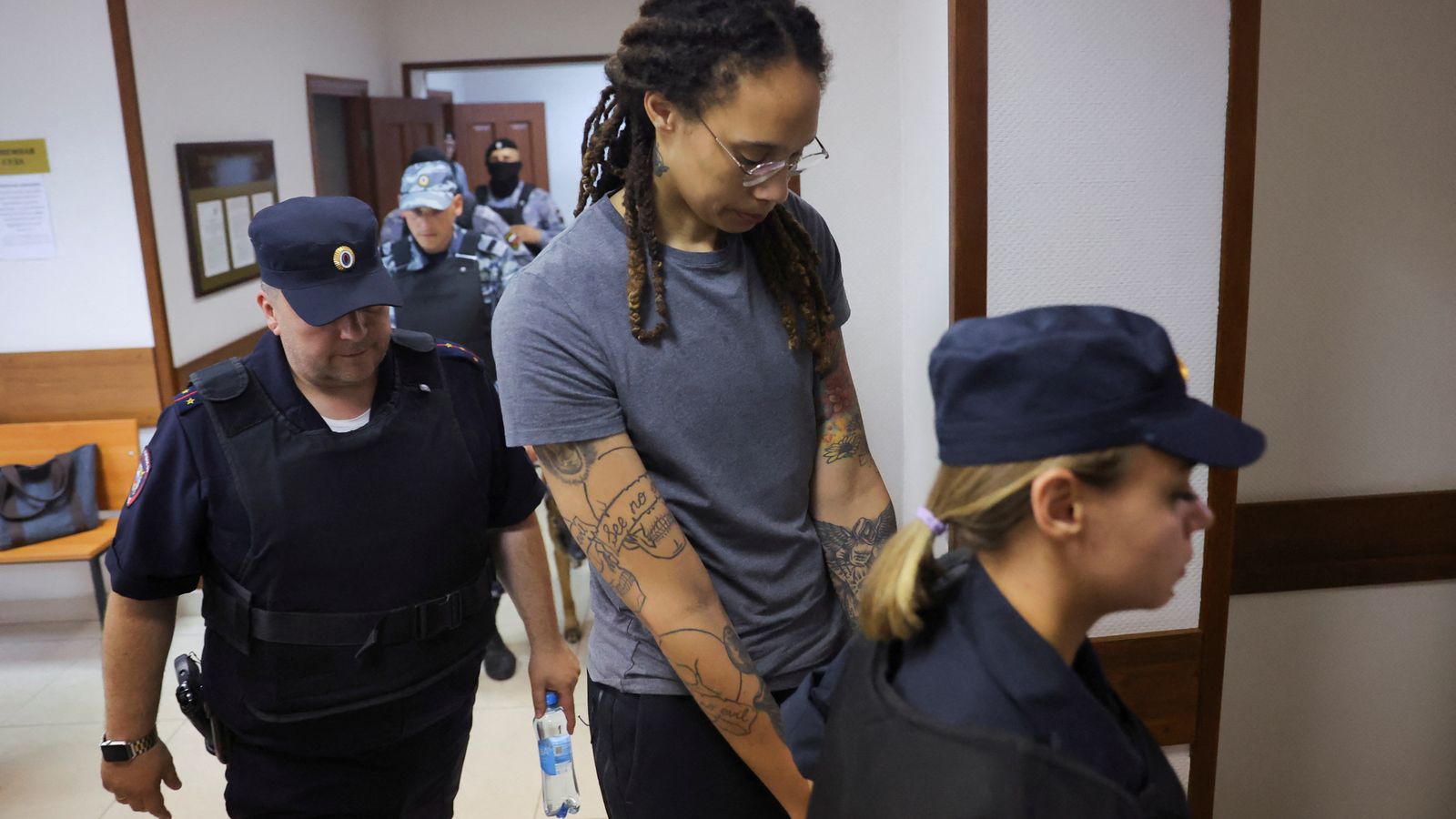 “That’s why I pled guilty to my charges. I understand everything that’s being said against me, the charges that are against me, and that is why I pled guilty,” Griner said, addressing the judge through an interpreter from her defendant’s cage. “But I had no intent to break any Russian laws.”