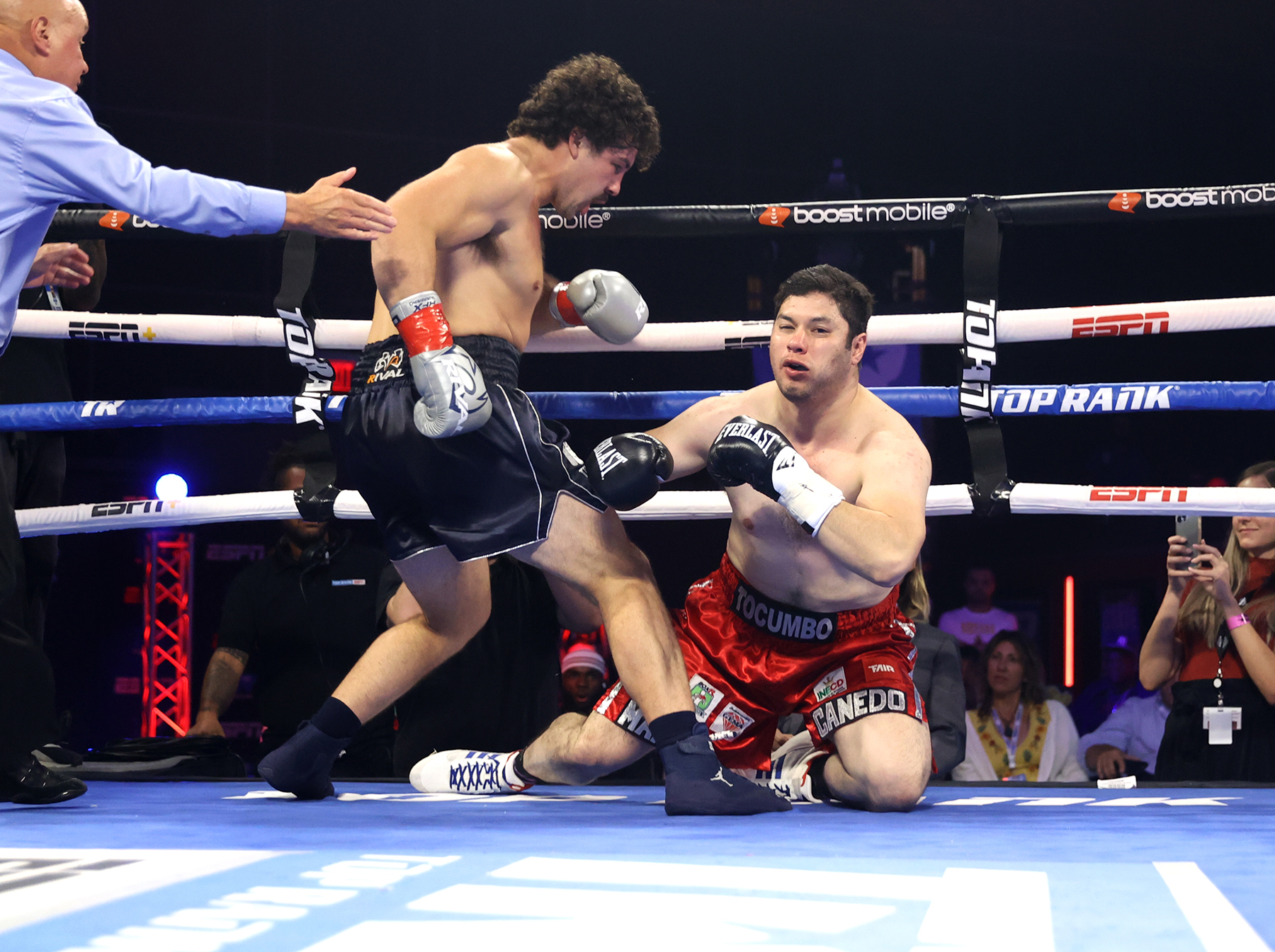 Torrez, a southpaw from Tulare, California, knocked down Canedo with a straight left hand 20 seconds into the round. He followed up with a crisp combination that culminated with a right hook that collapsed Canedo face first.