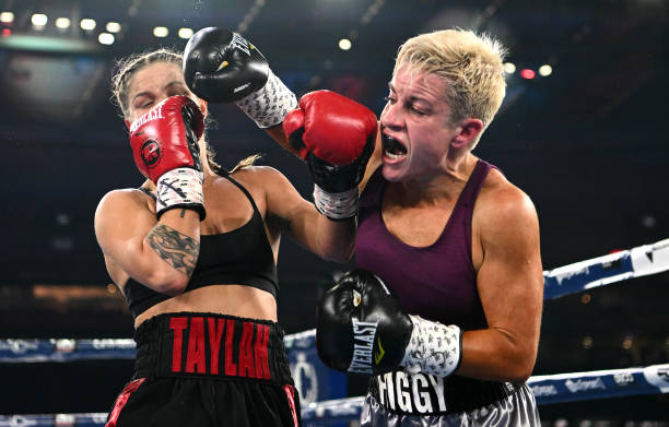 MELBOURNE, AUSTRALIA – JUNE 05: Sarah Higginson lands a punch to Taylah Robertson in the undercard fight before the World Lightweight Championship bout between George Kambosos Jr. of Australia and Devin Haney of the United States at Marvel Stadium on June 05, 2022 in Melbourne, Australia. (Photo by Quinn Rooney/Getty Images)