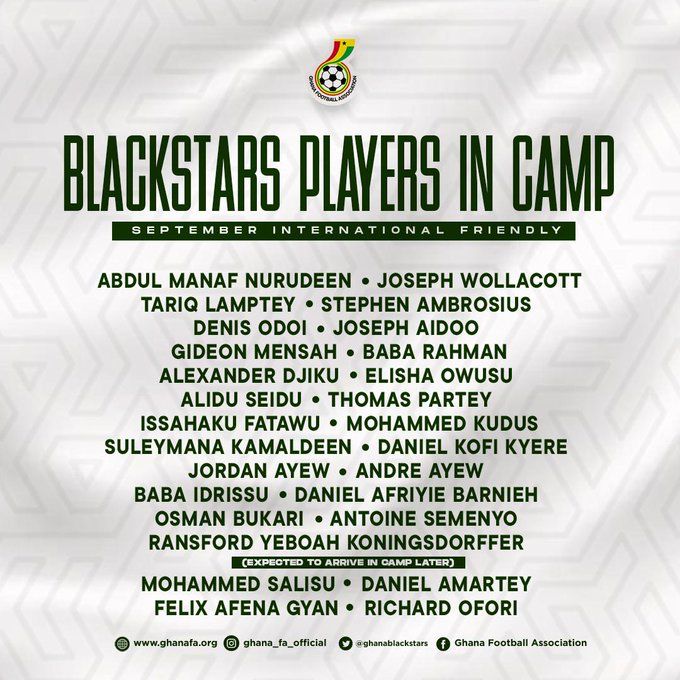 According to a latest update from the FA, players who have reported to camp for the friendly include Abdul Manaf Nurudeen, Joseph Wollacott, Stephen Ambrosius, Denis Odoi, Joseph Aidoo and Gideon Mensah.