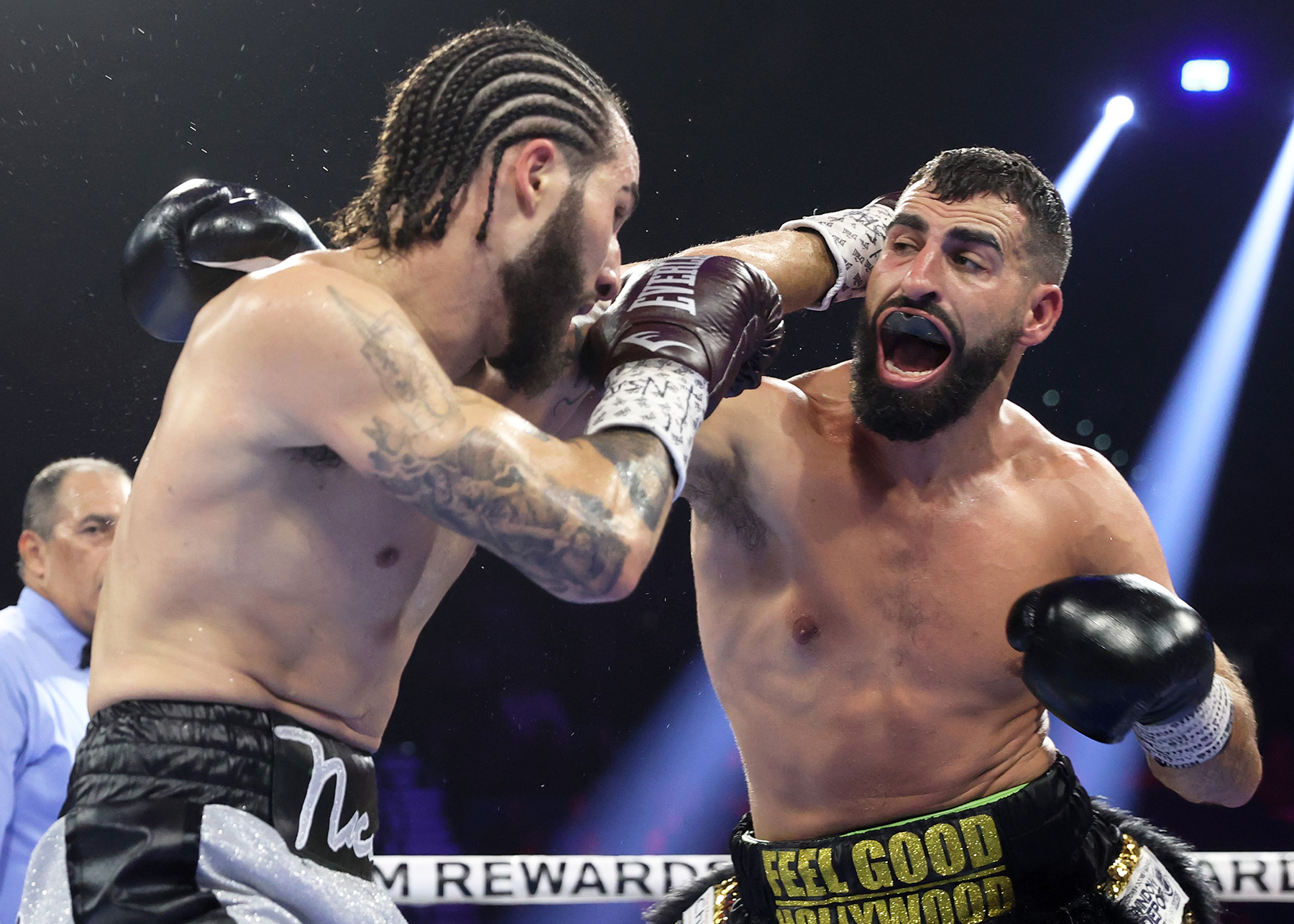 After adjusting to Moloney’s offense in the first round, Nakatani landed a right uppercut that dropped Moloney. The Australian former former world champion was undeterred, even as they clashed heads in the third round, causing a cut over Nakatani’s left eye and one over Moloney’s right eye.