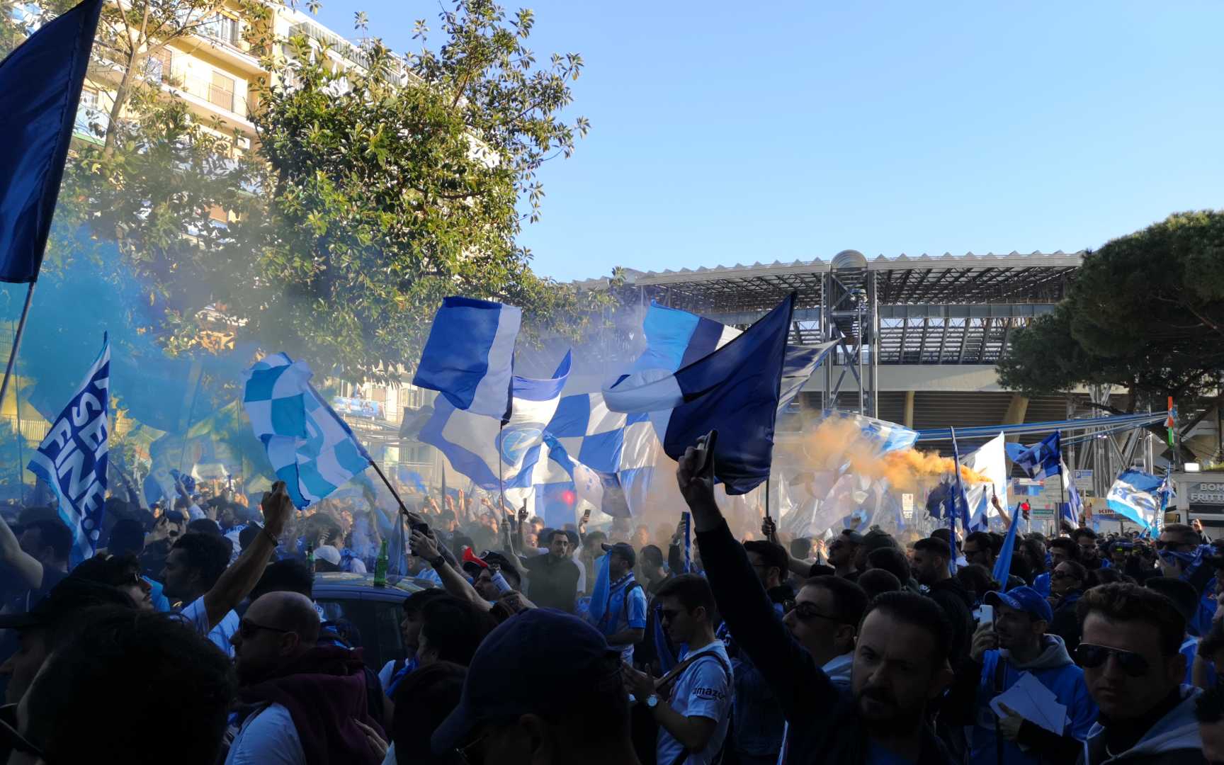 Flags, banners and blue smoke bombs transformed the scene of a live TV broadcast match into the most beautiful party and atmosphere in the streets. For Team Napoli from supporters who are 800 km away, were unable to experience the celebration live but the positive energy they received from Naples was very strong.