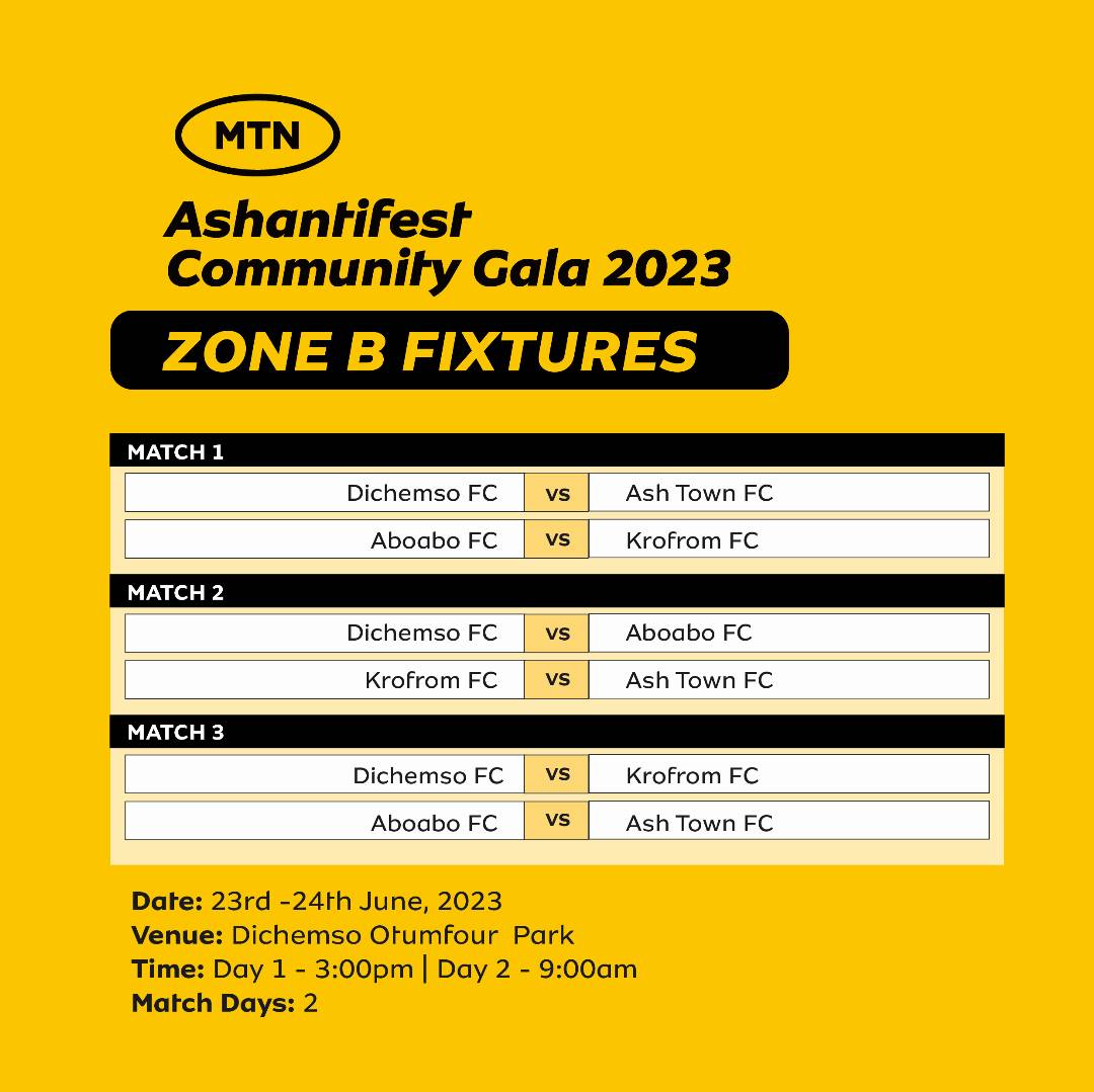 Zone B kicks off next week Saturday, June 24 when Dichemso play Ashtown and Aboabo take on Krofrom in the opening round at the Dichemso Otumfuor Park. As usual it continues with all four sides competling the round-robin format by close of second match day, Sunday June 25.