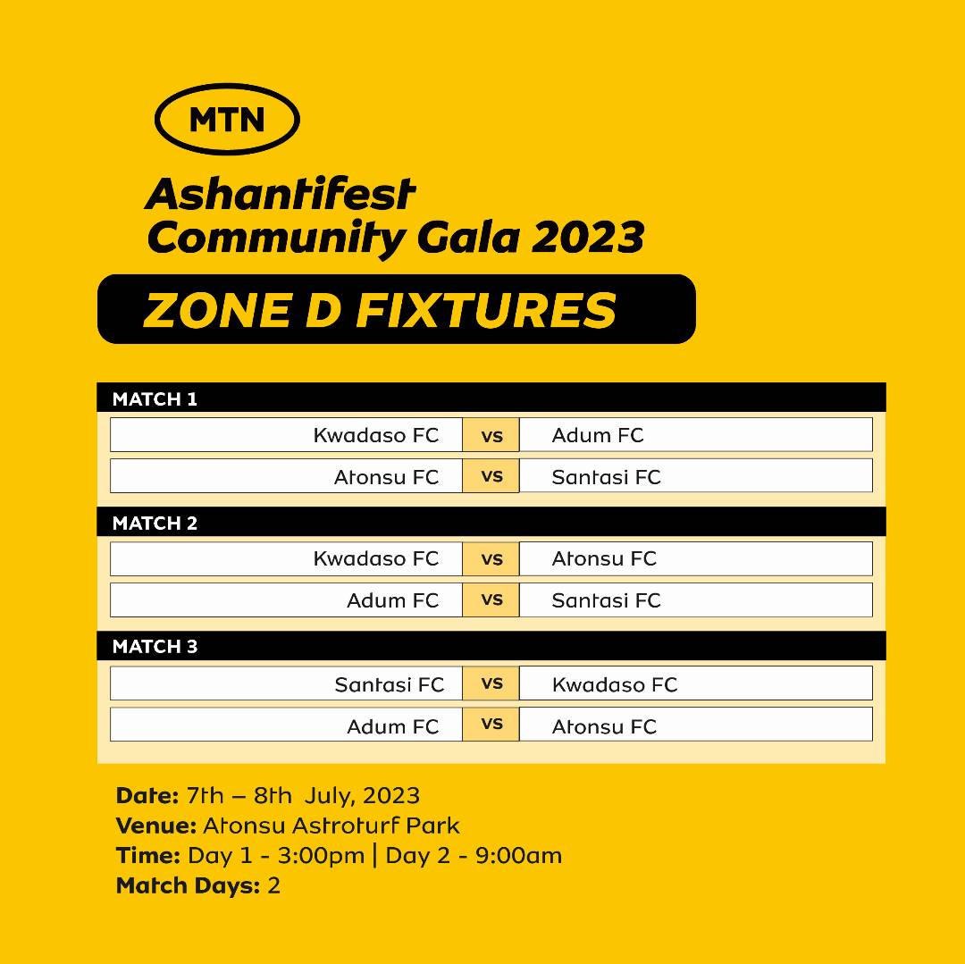 Zone C of course features defending champions, Tafo against hosts Abrepo, Bantama and Suame whilst Adum, Santasi, Kwadaso and the hosts Atonso slug it out in Zone D.