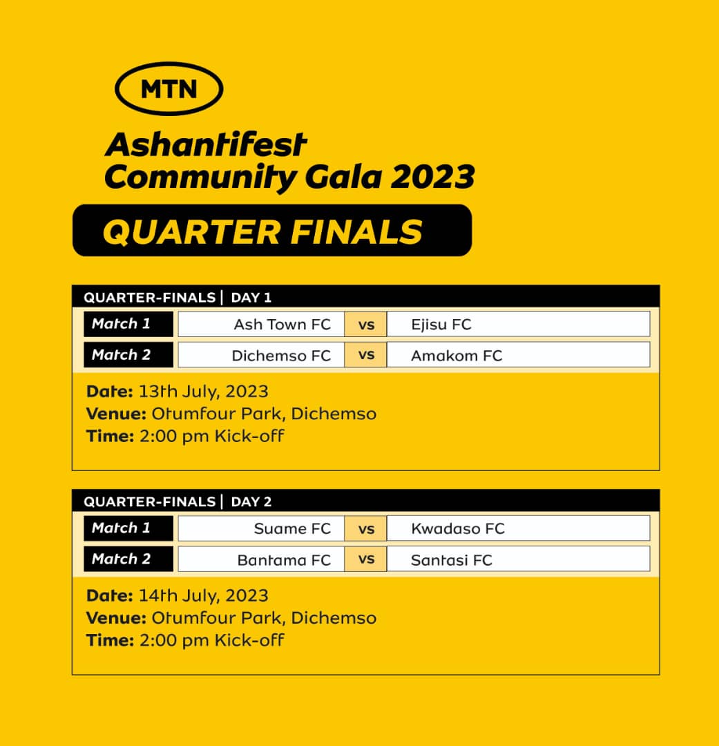 Match day one rocks the Otumfuor Park in Dichemso when Group A winner, Ejisu take on Group B runner-up, Ashtown in the first quarter final whilst Group B champs, Dichemso face Group A second placed, Amakom.