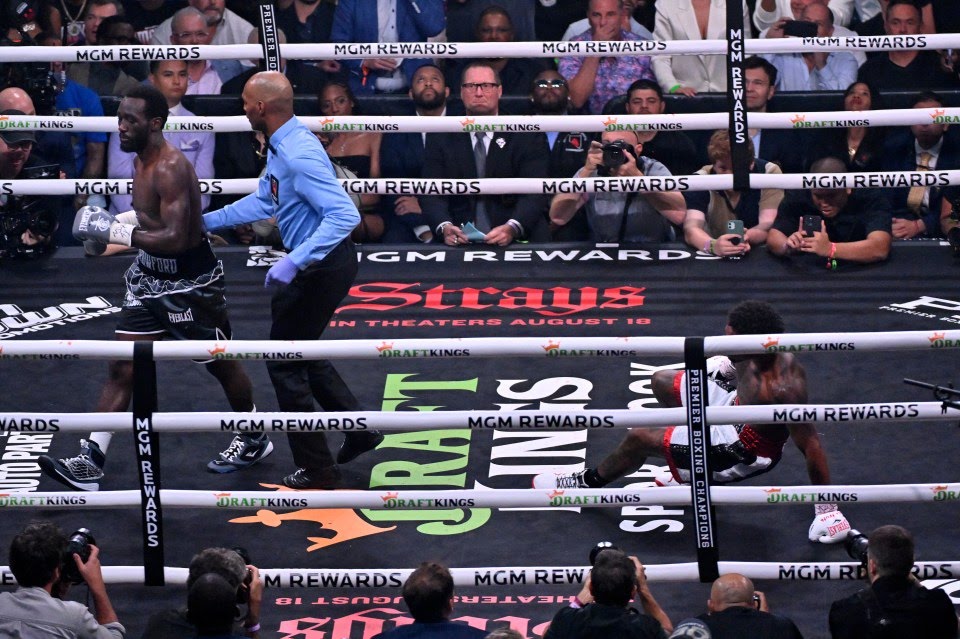 The referee felt the need to step in as Terrence Crawford was landing some big blows which Spence just could not reply to.