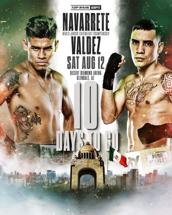 Valdez will challenge three-division world champion and countryman, Emanuel Navarrete for his WBO junior lightweight world title on Saturday, August 12, at Desert Diamond Arena in Glendale, Arizona.