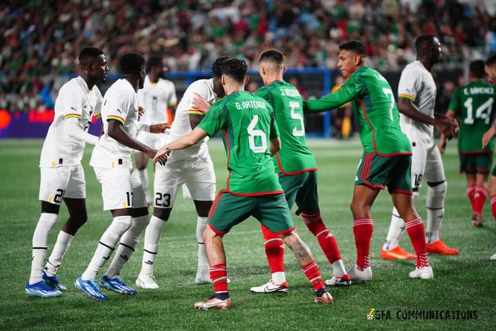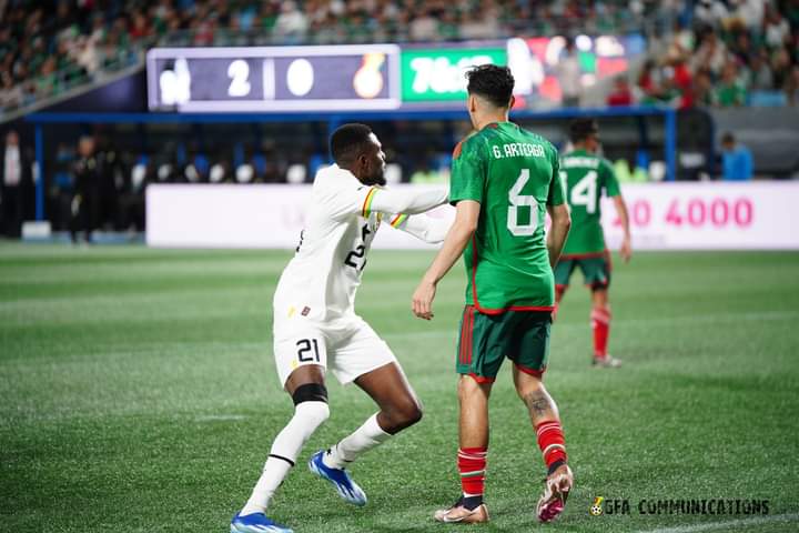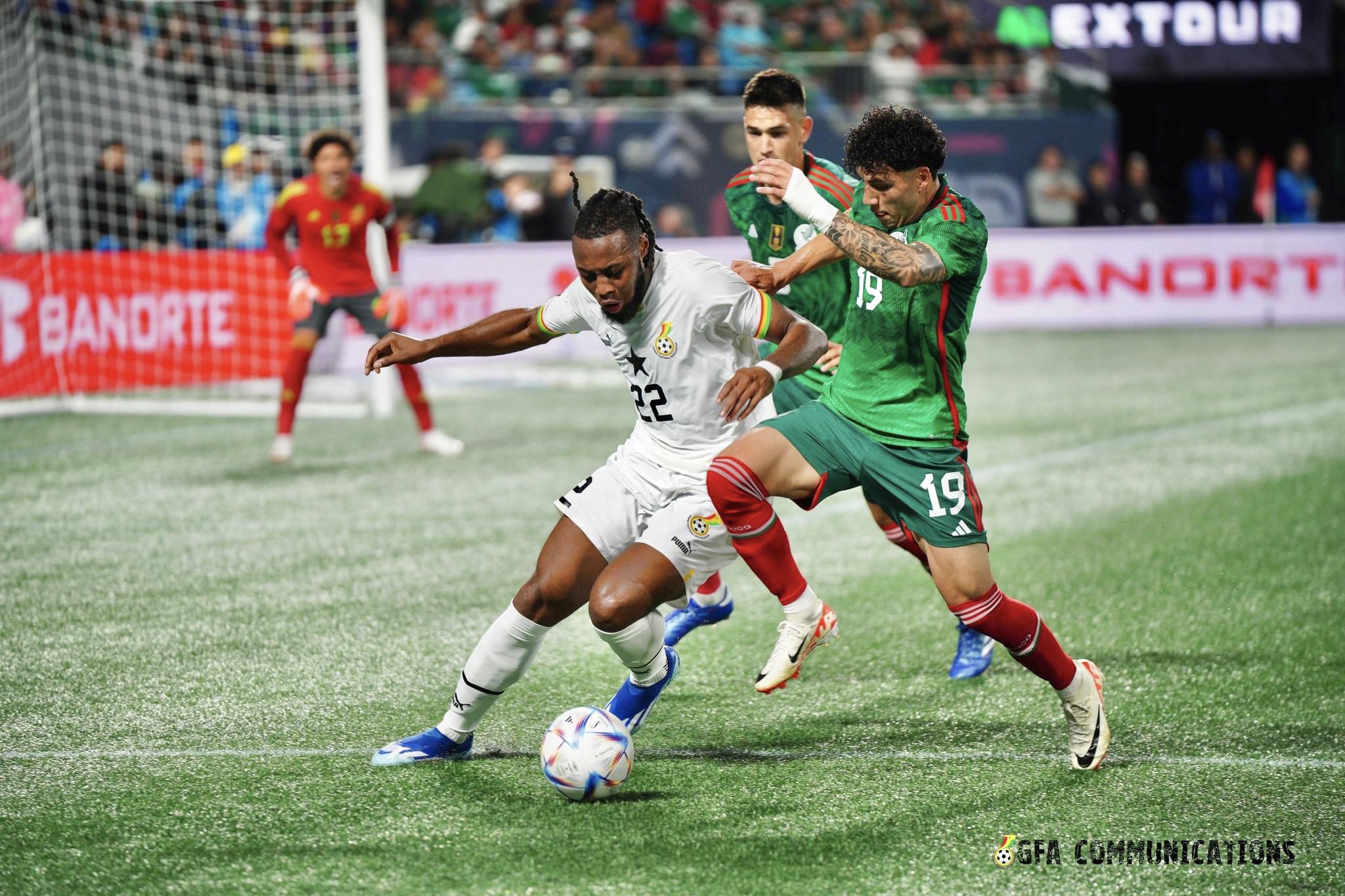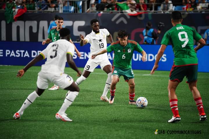 Ghana pushed men forward looking to change the dynamics of the game but Mexico held on to record their 4th successive win over Ghana.
