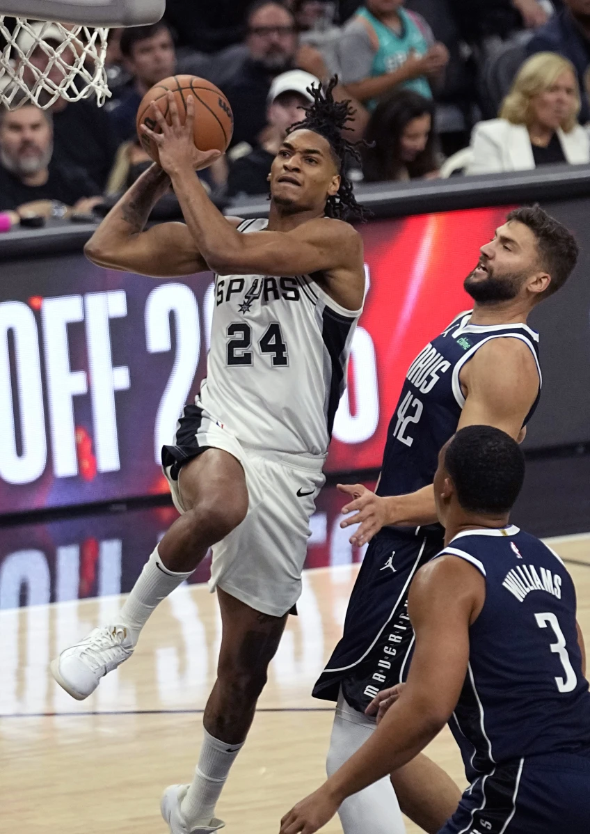 “One of the toughest things for a player is you get into foul trouble,” Popovich said. “You never get in a rhythm and you’re in and out of the game and that sort of thing. So, I thought his maturity showed even at a young age where he came in with the last, I think, seven minutes and just played.”