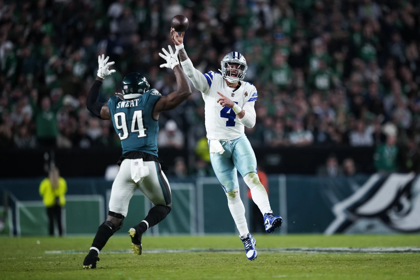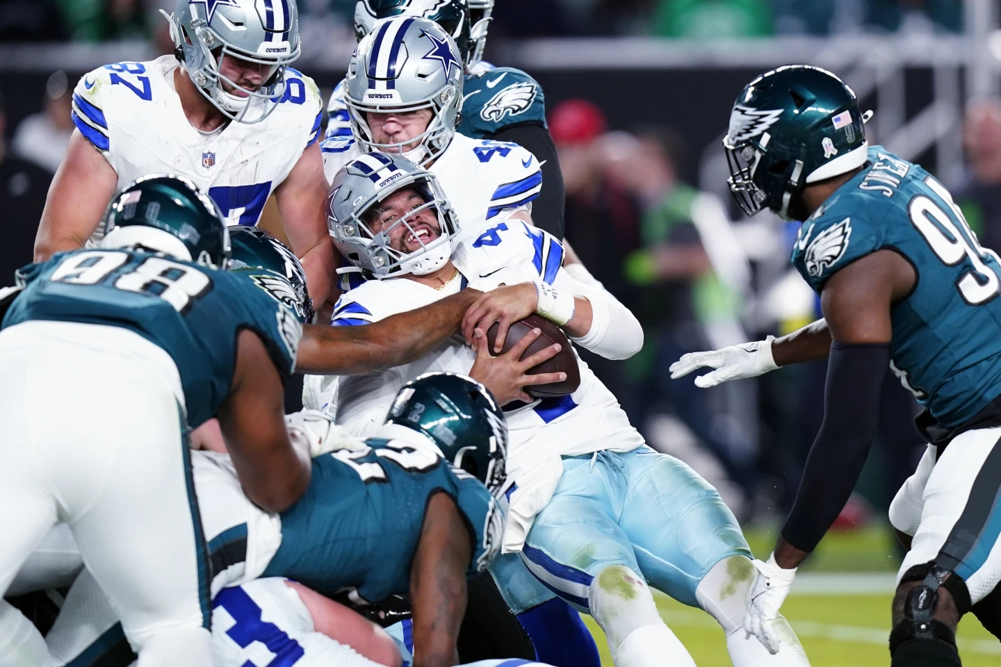 On the cusp of a stunning comeback, Prescott instead was sacked by Josh Sweat for an 11-yard loss.