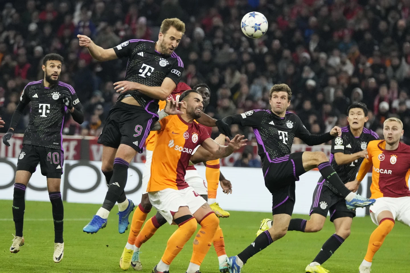 Harry Kane heads in to open the scores for Bayern Munich at home to Galatasaray